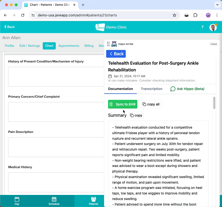 HippoScribe is a game-changer for physical therapists, especially for mobile and home health. Majorly cuts down on time and brain strain. I'm excited to see where it goes, as Yansen and his team are constantly asking for feedback and optimizing the program, and Yansen is super-responsive and helpful!